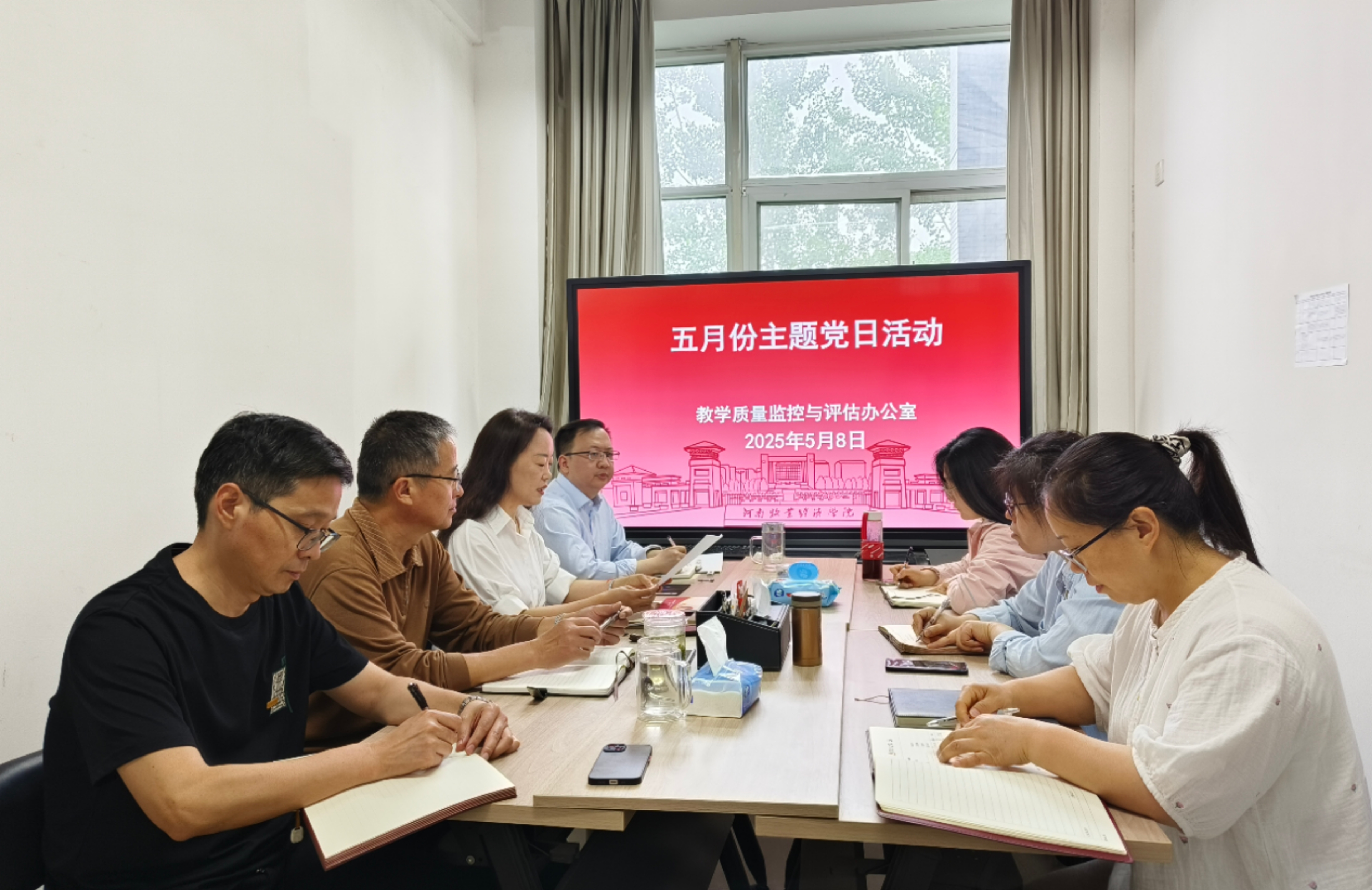 5月8日上午,教学质量监控与评估办公室党支部在善知楼A316会议室开展5月份主题党日活动。党支部书记马海燕主持活动,全体党员参加学习。
